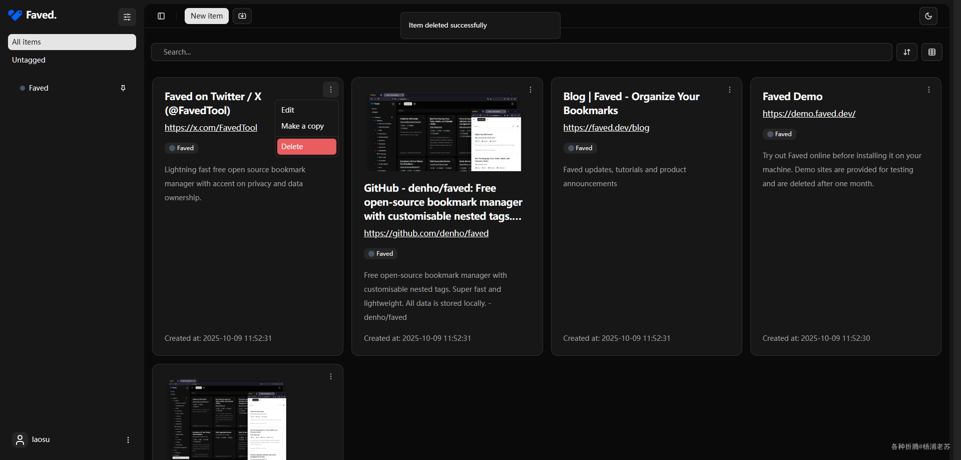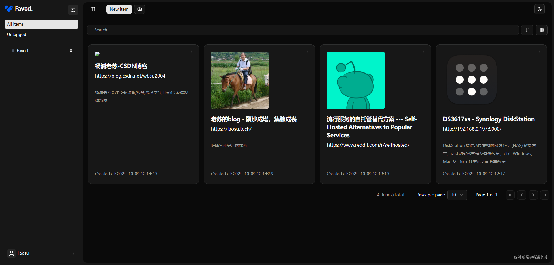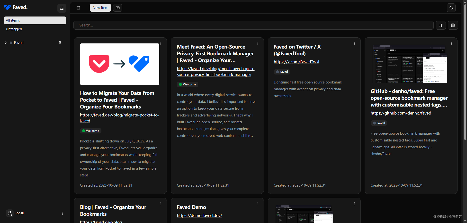 迁移,支持导入链接、标签、收藏和和笔记; - 开源 :代码是开放的,数据完全存储在本地服务器;
