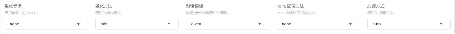 附加模块 | (空) | 指定除 LoRA 层外,还有哪些模块需要被训练。 | 全参数微调的替代方案。例如,想同时训练模型最后的分类头,可以在这里指定。通常留空。 |