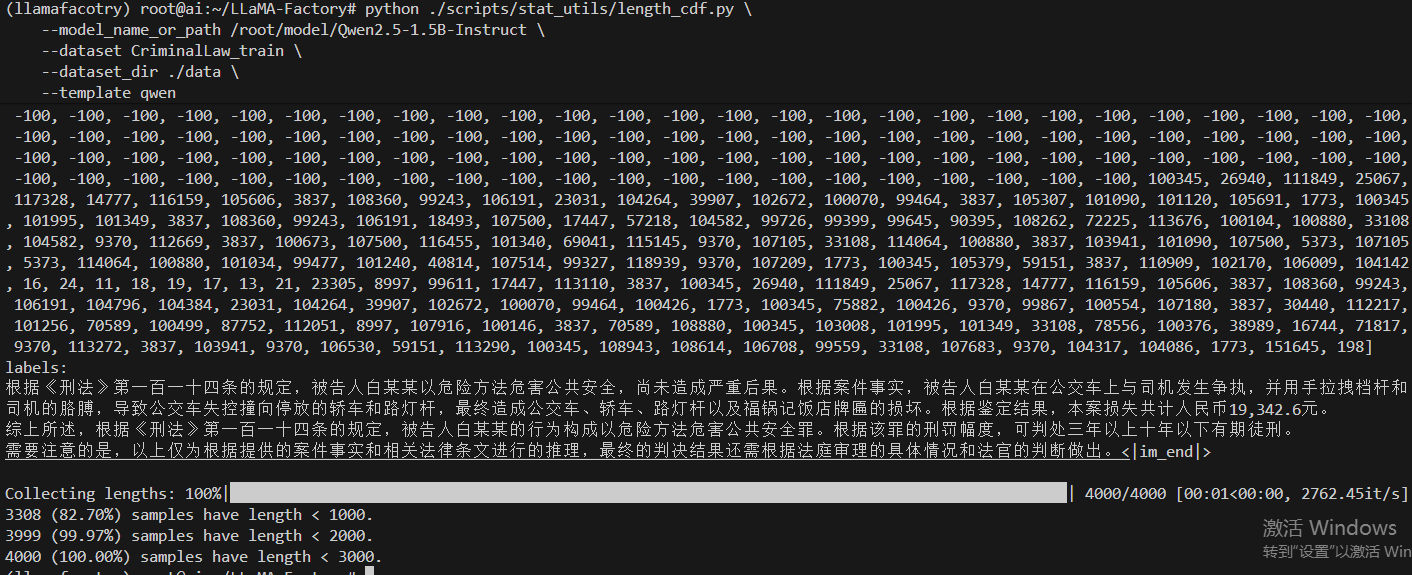 在LLaMA-Factory/scripts/stat_utils/length_cdf.py 主要用于分析数据集中样本经过分词后的长度分布。这对于微调前设置合适的 cutoff_len