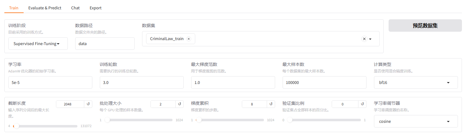 使用到的微调数据集的原始数据集是在魔塔社区的DISC-Law-SFT · 数据集 建议先去看我上一篇博文再看这篇。