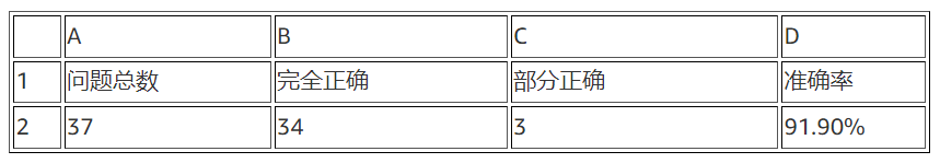 经过前期多轮沟通与调优后,最终版本在客户测试后,问答准确率达到了91.9%,此结果已超过客户测试前的预期(此前客户要求准确率在80%以上)。测试结果统计如下: