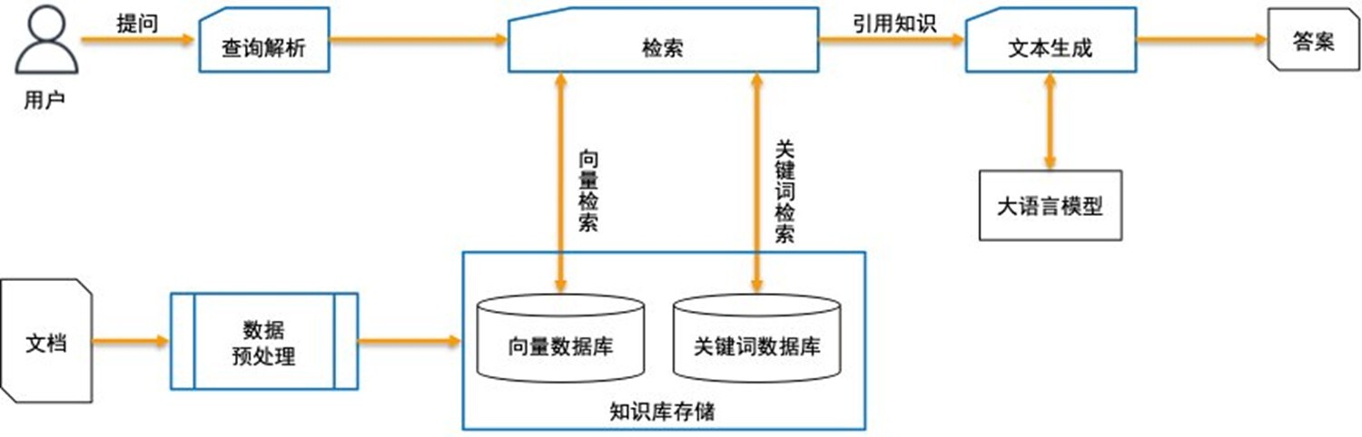 知识库存储由向量数据库和关键词数据库两部分组成,分别用于向量检索和关键词检索。
