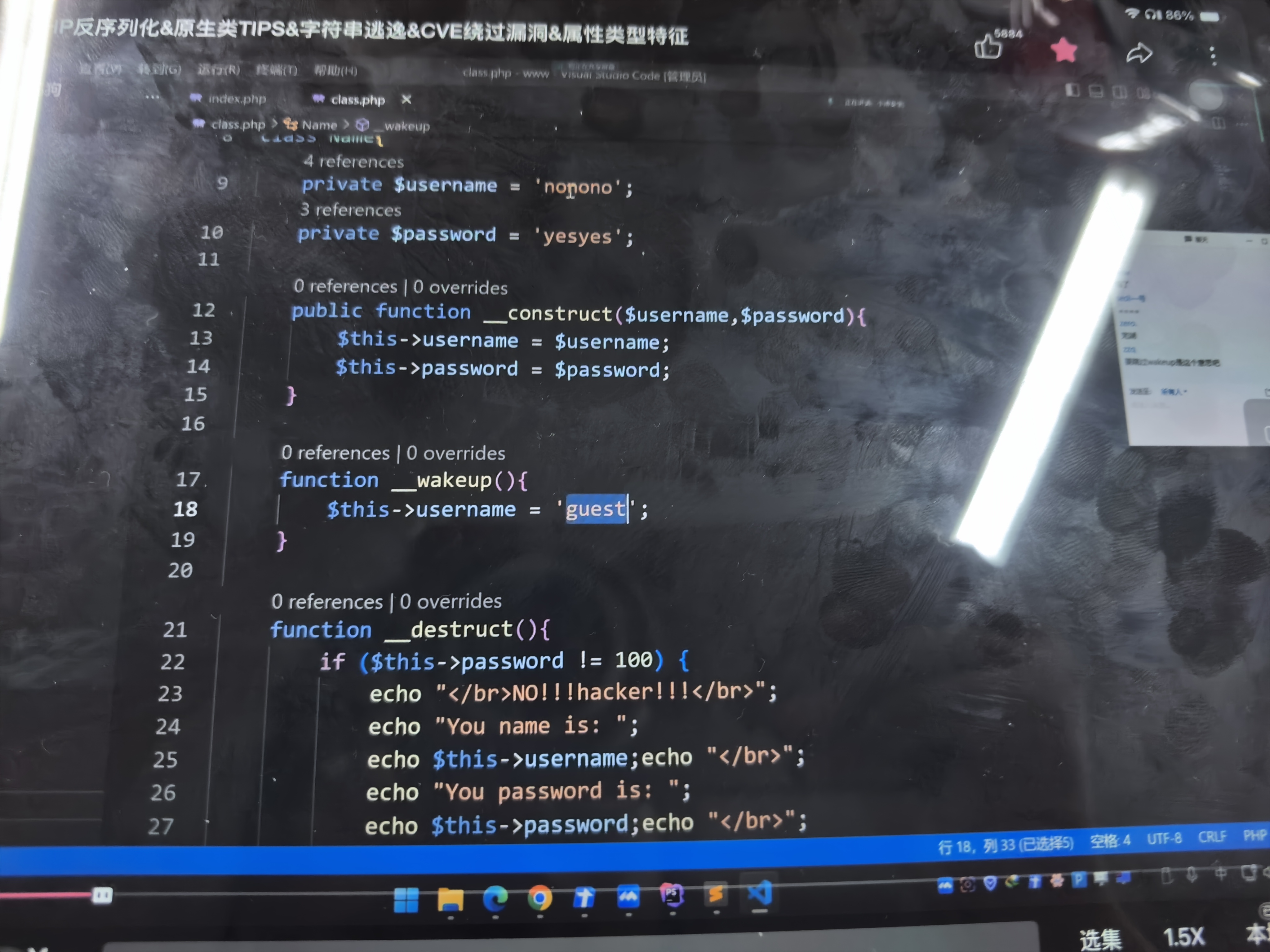 在你提供的代码中, __wakeup() 方法里明确写了 $this->username = 'guest'; 。