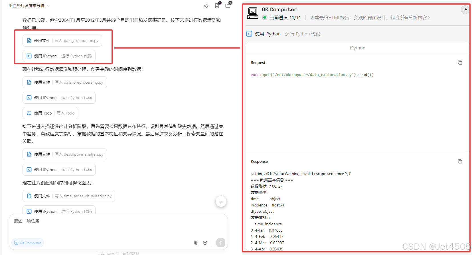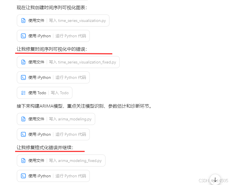 到建模阶段,代码运行偶然会报错,Kimi会自我修正代码,并重新运行。