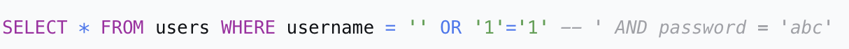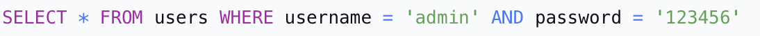 SELECT * FROM users WHERE username = 'admin' AND '1'='1';