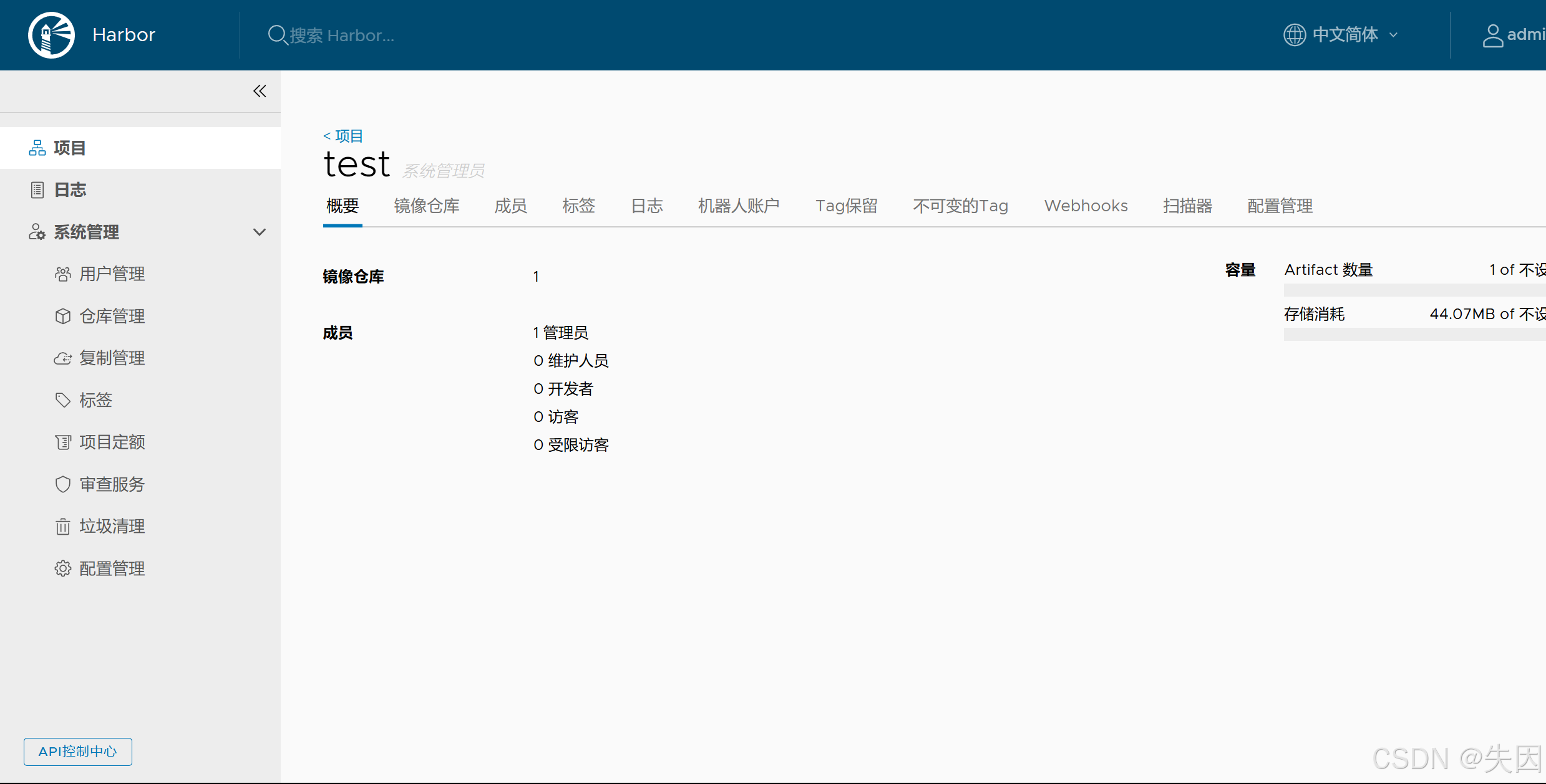 - 登录:用户名 admin,密码为 harbor.yml 中配置的 Harbor12345;