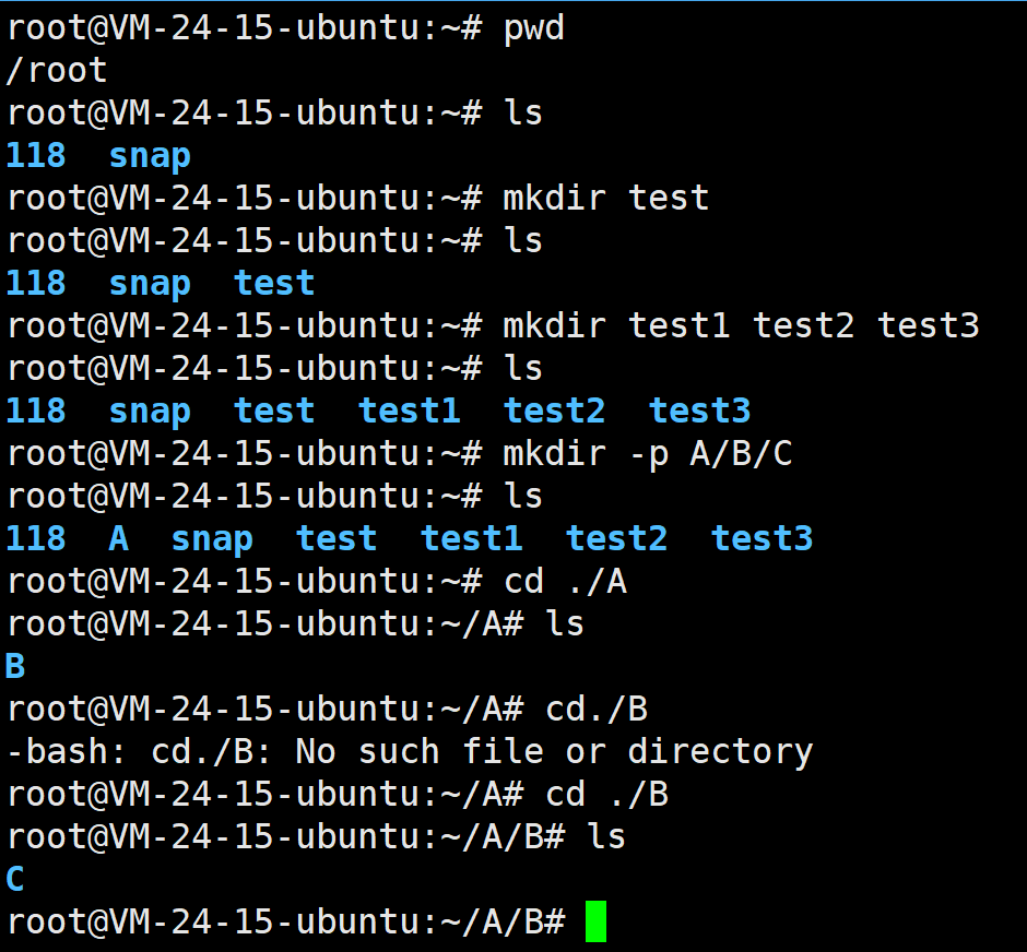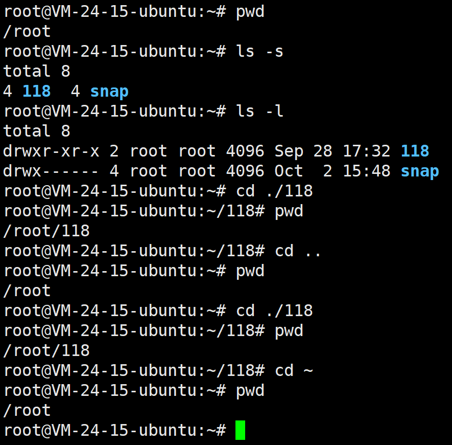 开始的完整路径(比如/root/dir),相当于 “从市中心出发,报完整门牌号找地方”; - 相对路径:从当前目录出发的 “短途路线”,相当于 “从你现在站的地方,往左转 / 往前走”—— 比如当前在/root,想进dir,直接用cd ./dir(相对路径),比写绝对路径更省事(这里可能还不是很看的出来,学到后面大家体会会比较深)