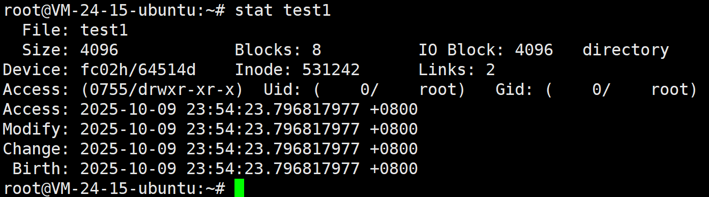 - 更改时间(ctime):最后一次 “修改文件属性” 的时间(比如改文件名、改权限)