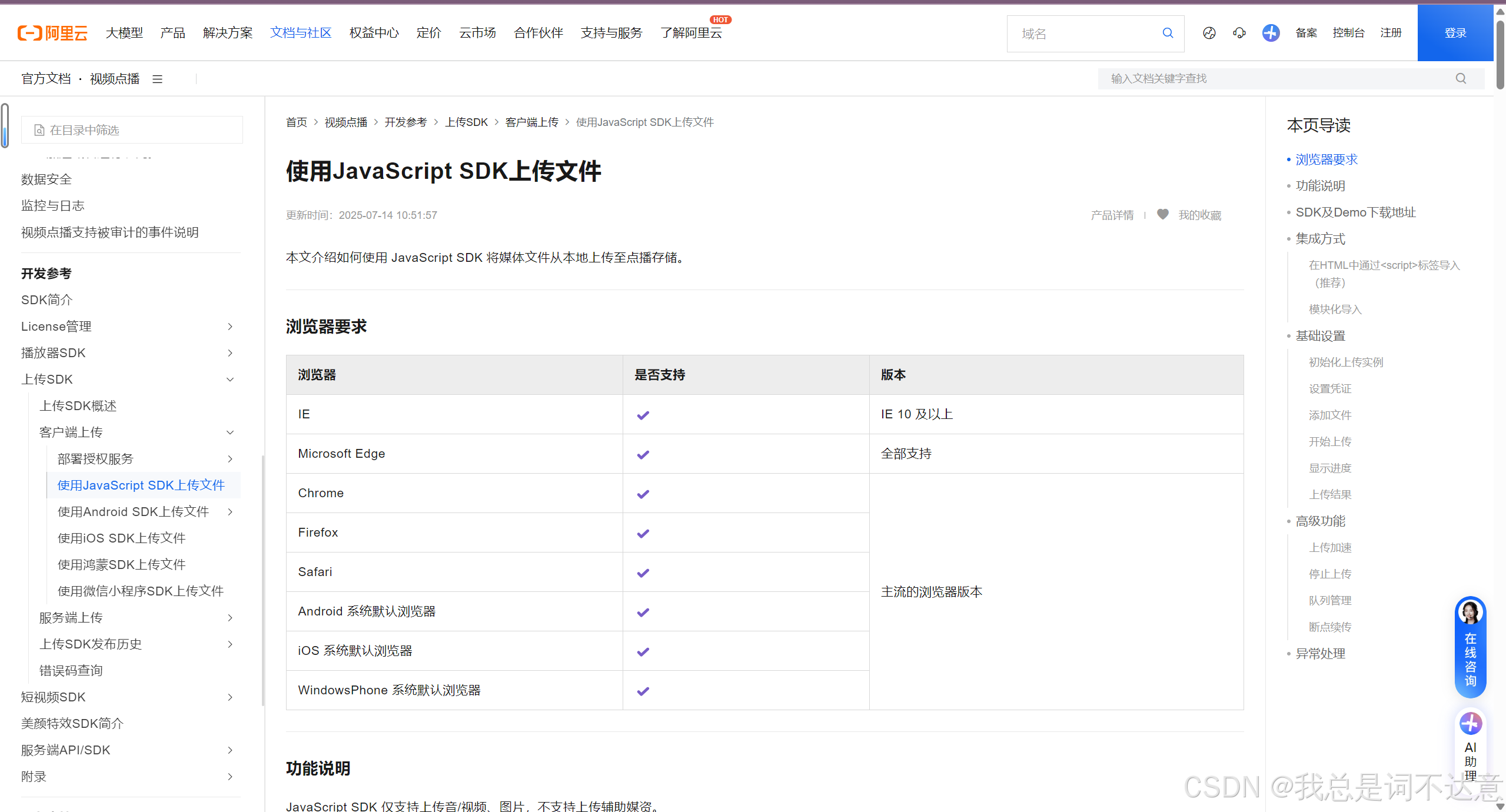 使用JavaScript SDK上传文件_视频点播(VOD)-阿里云帮助中心 (aliyun.com)