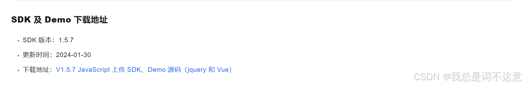 <script>// 检查SDK是否加载成功document.addEventListener('DOMContentLoaded',function() {if (window.AliyunUpload) {console.log('阿里云上传SDK加载成功');} else {console.error('阿里云上传SDK加载失败');}});