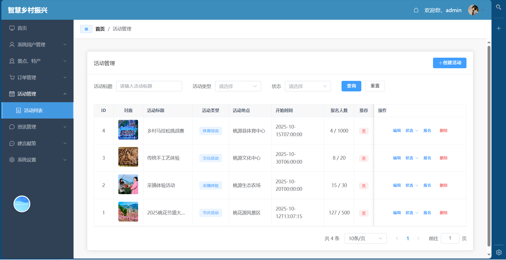- 活动状态管理(草稿、已发布、报名中、已结束等)