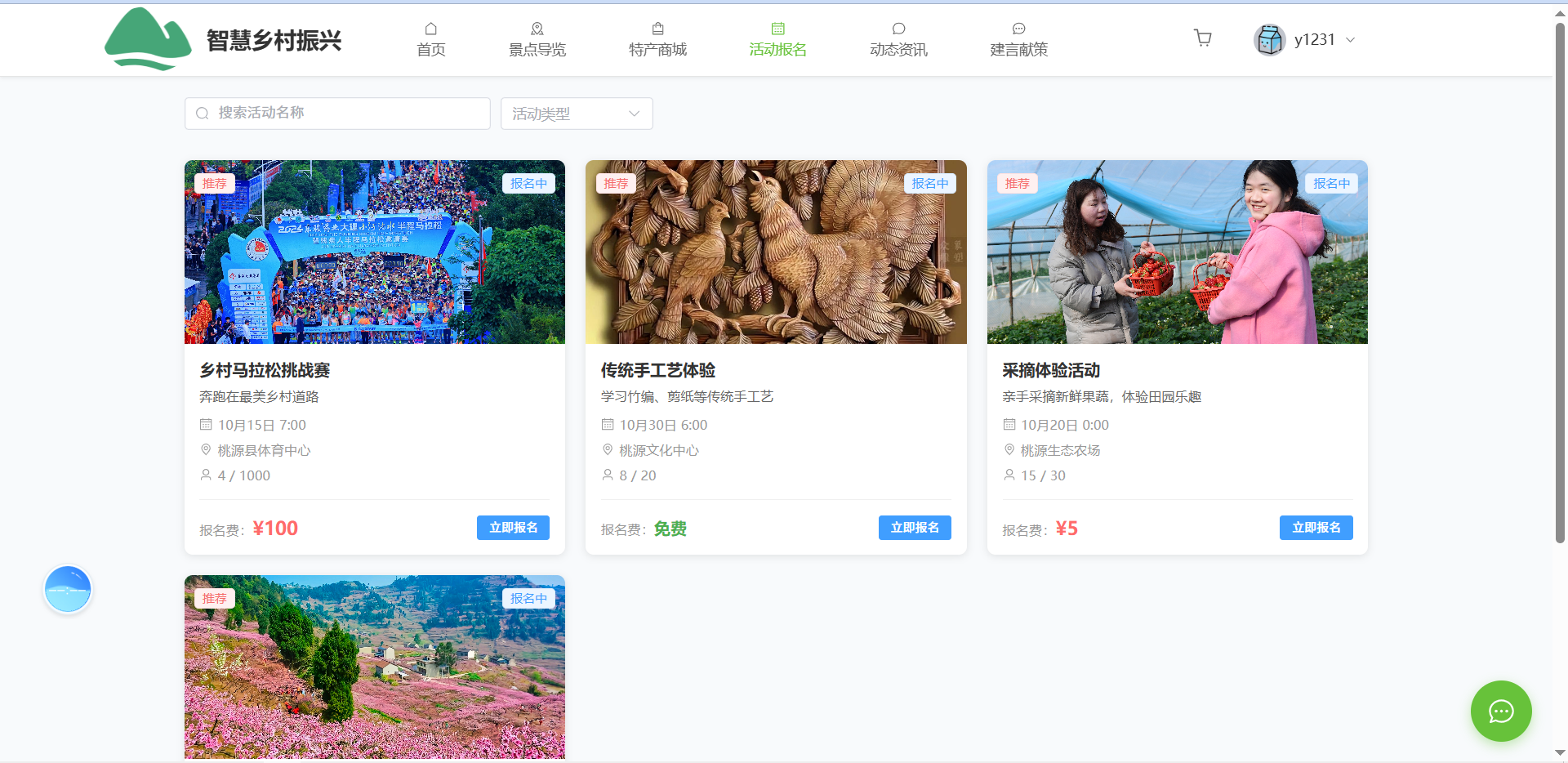 - 活动分类筛选(节庆活动、采摘体验、文化活动、体育活动等)