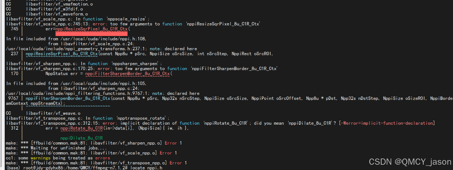 编译出错 提示找不到 nppiResizeSqrPixel_8u_C1R_Ctx 函数