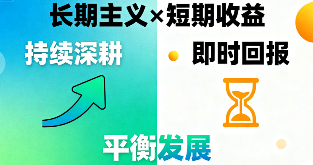 “长期主义 + 短期收益” 并存的商业闭环,核心是打破 “重短期轻长期” 或 “谈长期无短期” 的失衡,通过系统化设计让短期盈利为长期发展供血,长期价值反哺短期收益增长,形成 “短期变现 - 长期沉淀 - 再短期增效” 的正向循环。