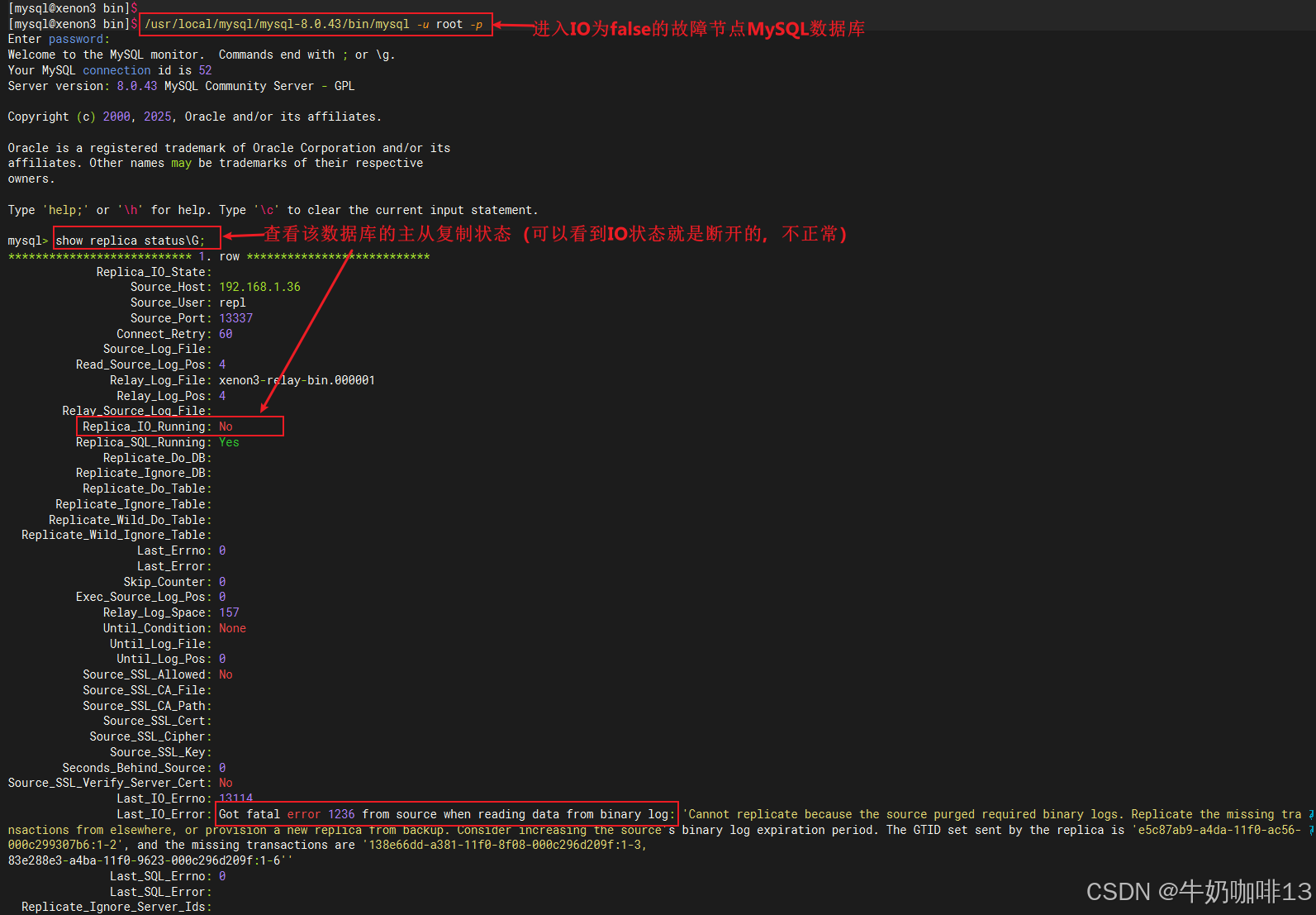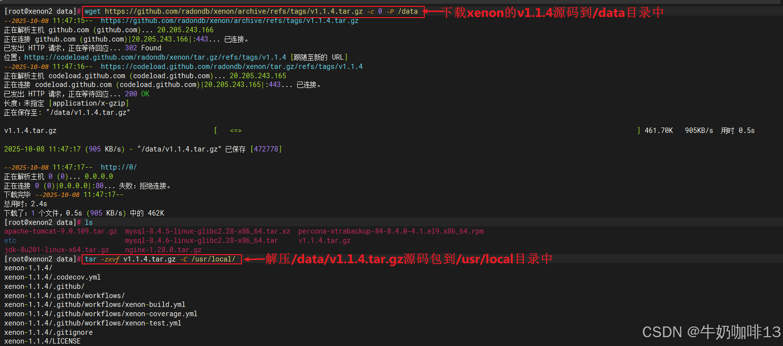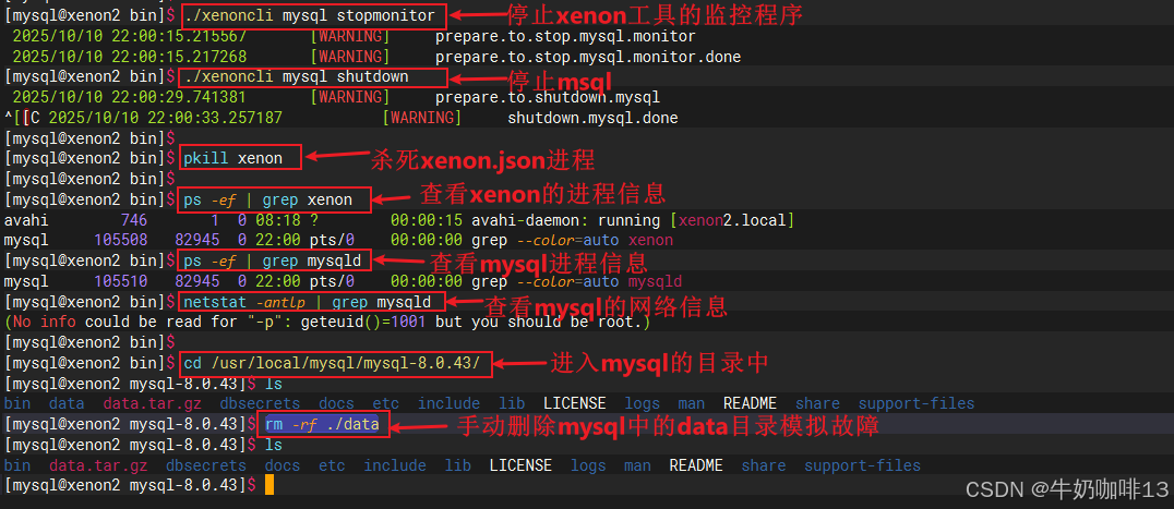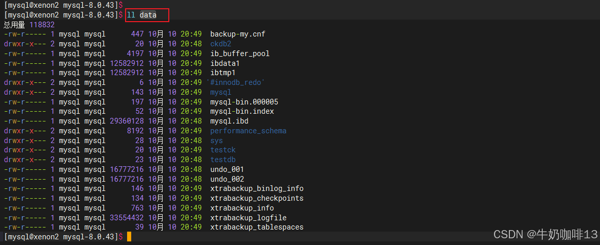 scp 2025101020.tar.xz mysql@xenon2:/usr/local/mysql/mysql-8.0.43/#2.2-进入到该故障节点的【/usr/local/mysql/mysql-8.0.43】目录中,将xenon备份的Mysql数据【2025101020.tar.xz】解压到【/usr/local/mysql/mysql-8.0.43/data】目录中
