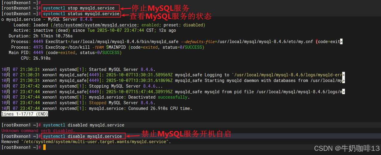 systemctl stop mysqld.service#12-可以重启Linux后查看mysql服务状态看它是否开机重启