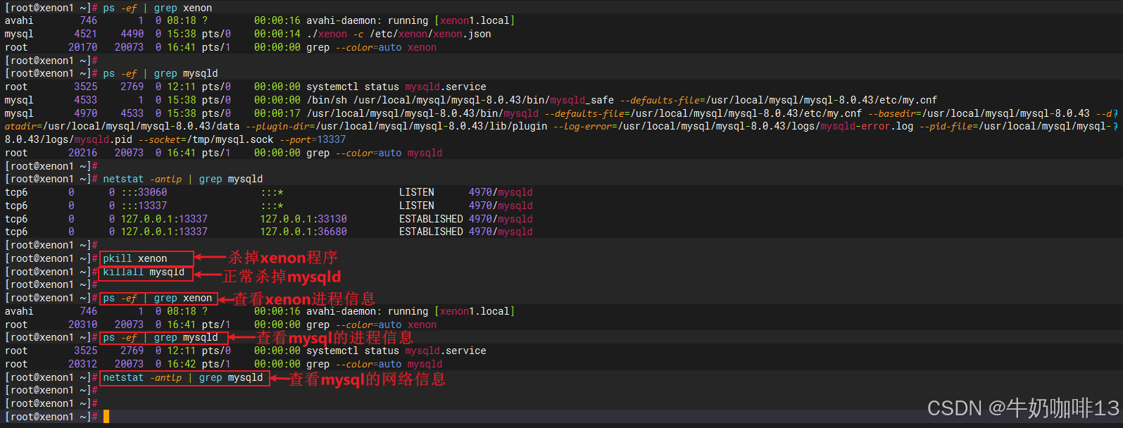 killall mysqld#3-查看mysql进程信息和xenon进程