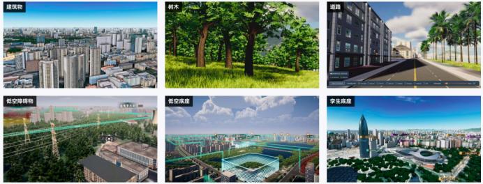 全要素:支持40+建筑物类型、植被、道路、水系等,以及输电塔、风机、在建建筑物、烟囱等低空障碍物。