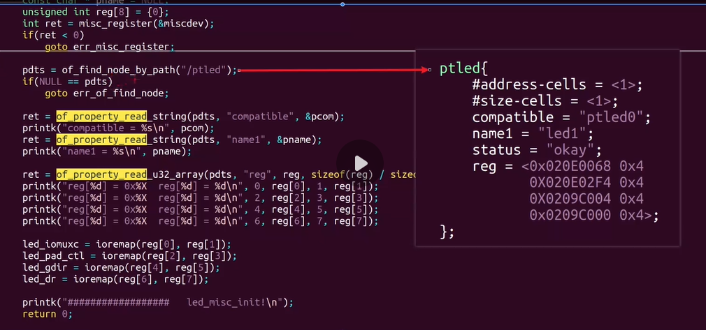 ptled{#address-cells = <1>;#size-cells = <1>;compatible = "ptled0";name1 = "led1";status = "okay";reg = <0x020E0068 0x40X020E02F4 0x4 0X0209C004 0x4 0x0209C000 0x4>; };