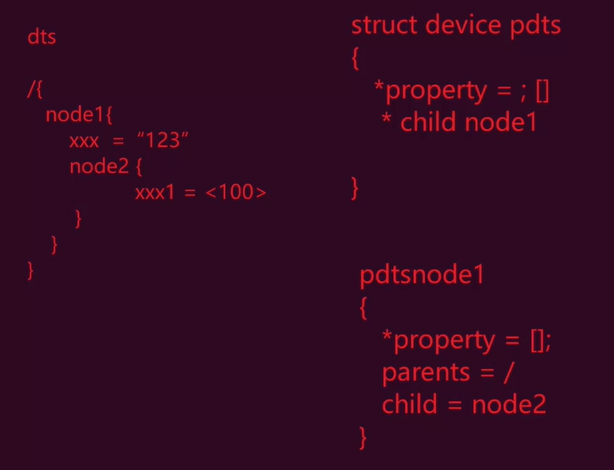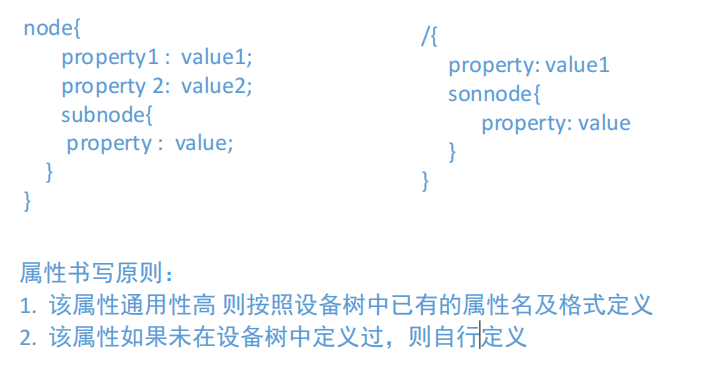 - DTS文件由节点(node)和属性组成,节点可嵌套形成树状结构。