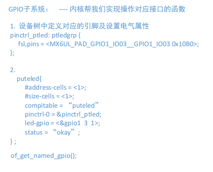 - 使用of_get_named_gpio获取设备树中定义的GPIO编号。