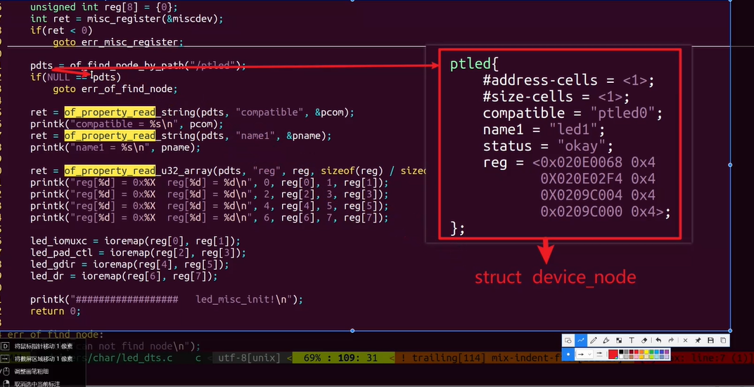 - 使用of_find_node_by_path函数根据路径查找设备树节点。