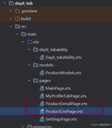 注意现在MainPage.ets作为了应用的入口,在day5_navigation模块中,ProductListPage是应用入口。拷贝到day6_tab模块后,ProductListPage上的@Entry就可以去掉了。