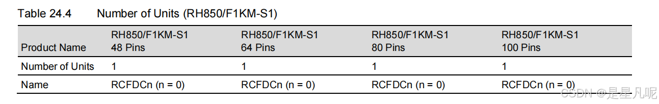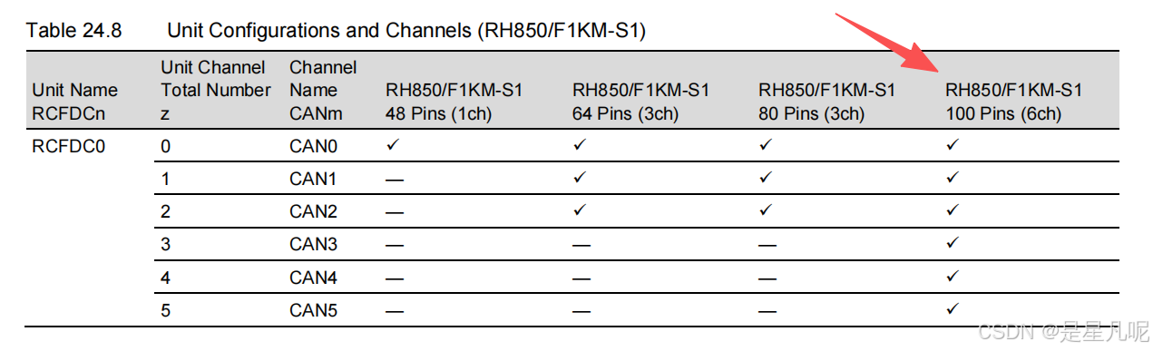 很明显,F1KMS1有一个CAN模块即为RCFDC0,附带有6路CAN,并且不支持CANFD