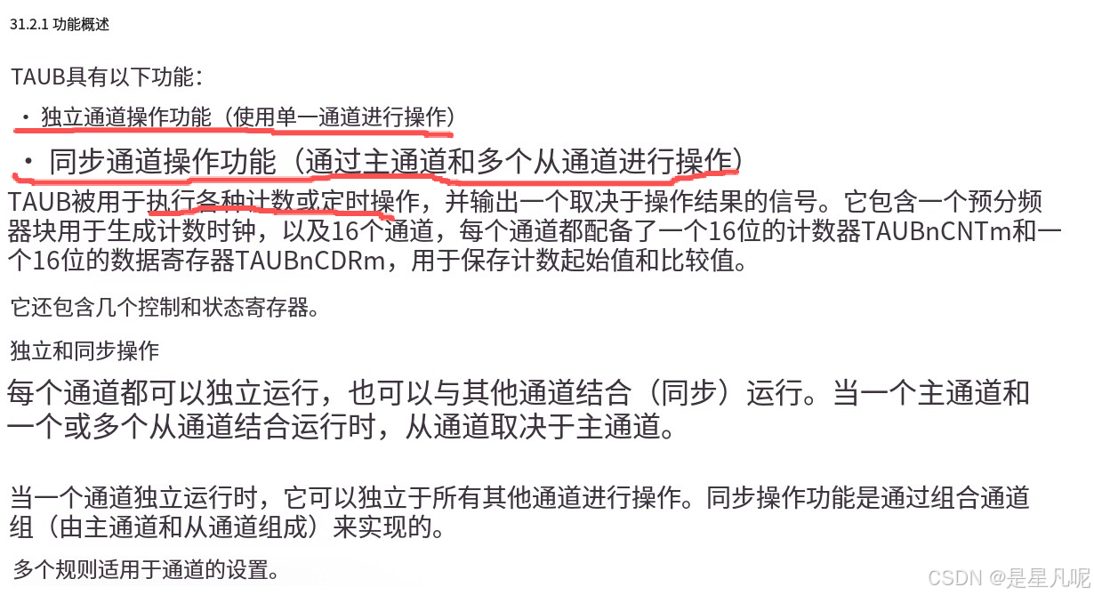 三者的功能各有异同,可以通过参考手册查看,比如下面查看的TAUB定时器的功能。