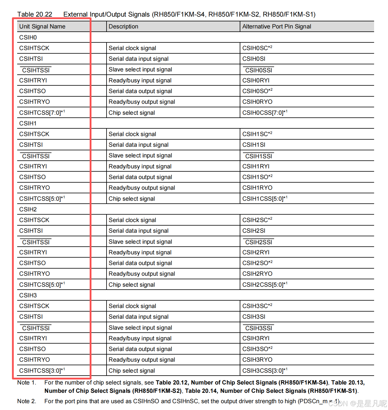 具体的引脚标识第二张图都有标了,一共是4路(CSIH0~3)