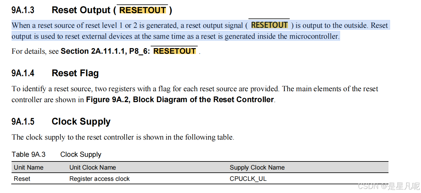 当产生复位等级1或2的复位源时,复位输出信号(RESETOUT)被输出到外部。重置
