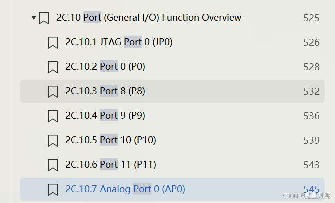 代表端口:P10_x、P11_x、P0_x、P8_x、P9_x等表示不同的引脚