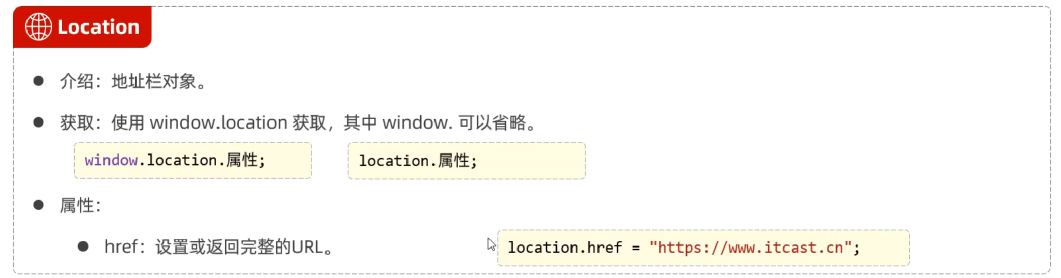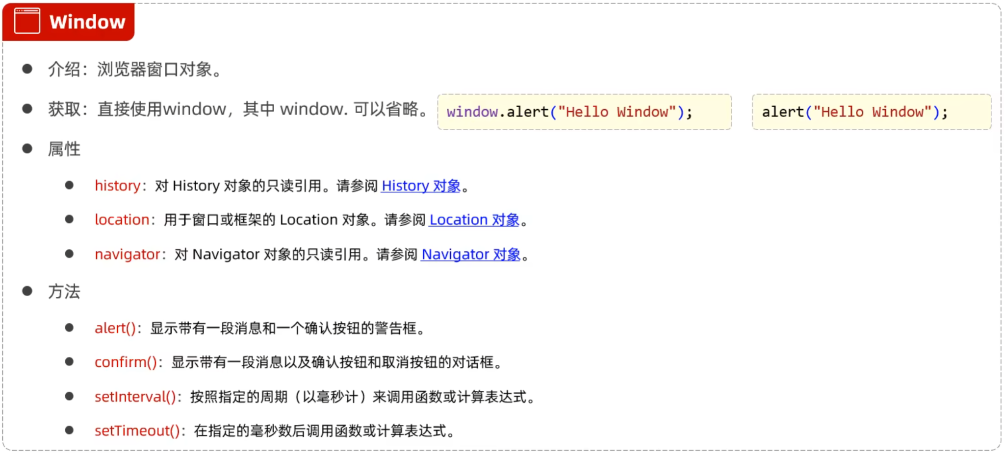 概念:浏览器对象模型,允许JavaScript与浏览器对话,JavaScript将浏览器的各个组成部分封装成对象。