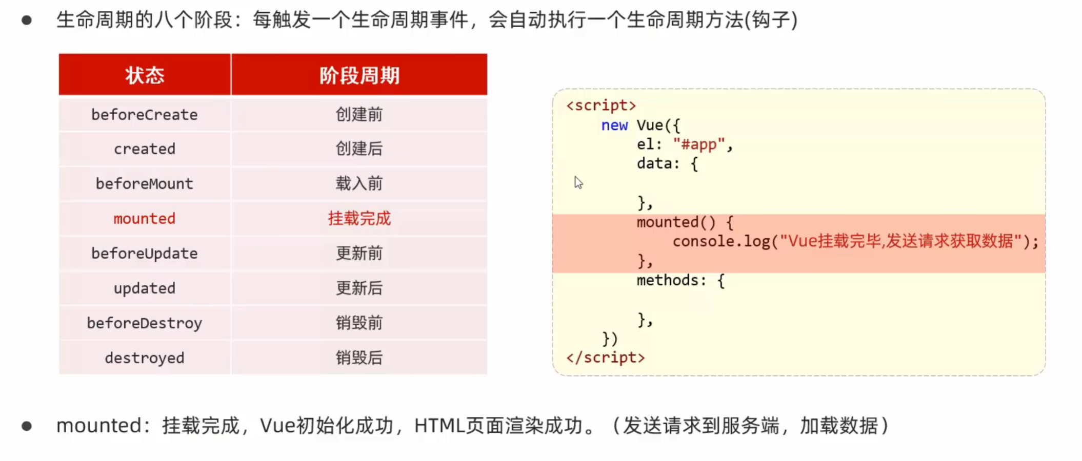 生命周期的八个阶段:每触发一个生命周期事件,会自动执行一个生命周期方法(钩子)