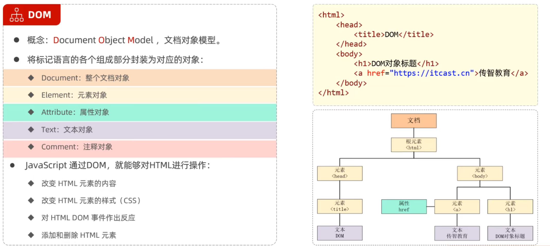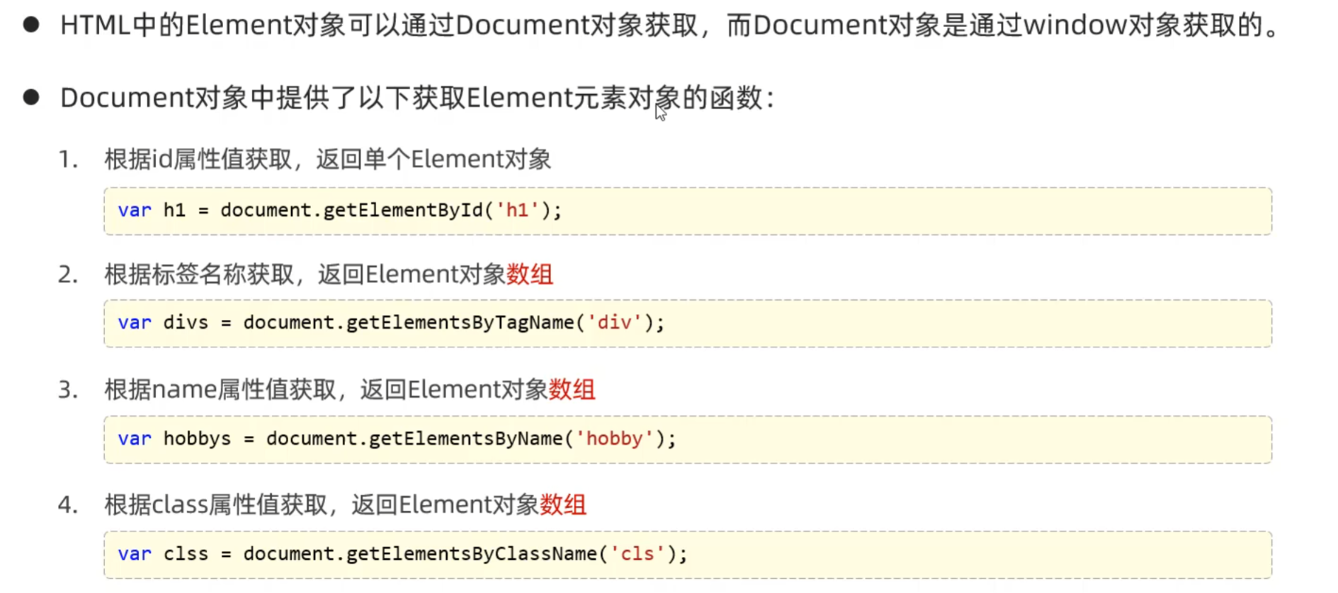 - 第二点是如何调用这个元素中的属性or方法从而来操纵html的元素对象(方法和属性查询参考手册)。