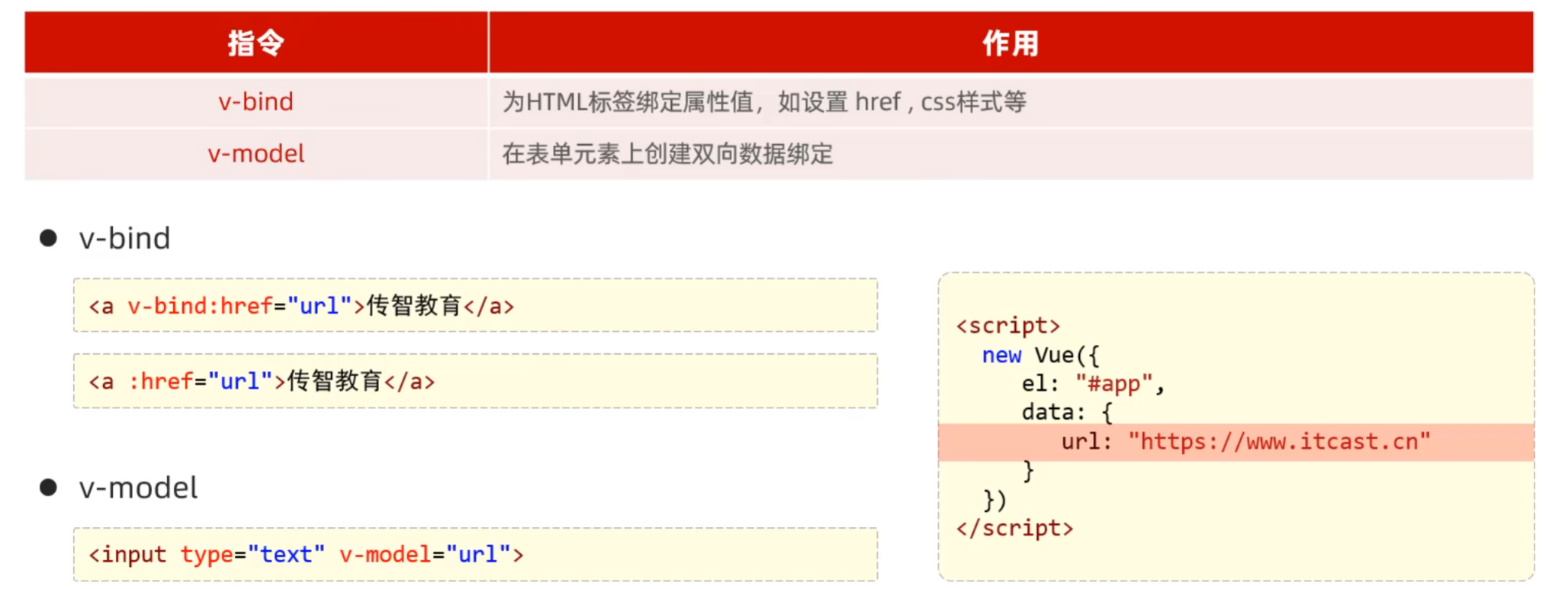 注:通过v-bind或者v-model绑定的变量,必须在数据模型中声明