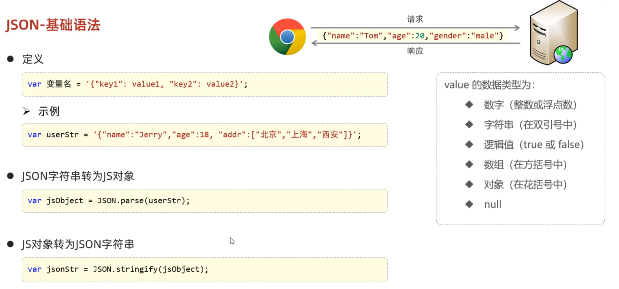 由于语法简单,层次结构鲜明,现多用于数据载体,在网络中进行数据传输,例如前后端的请求与响应