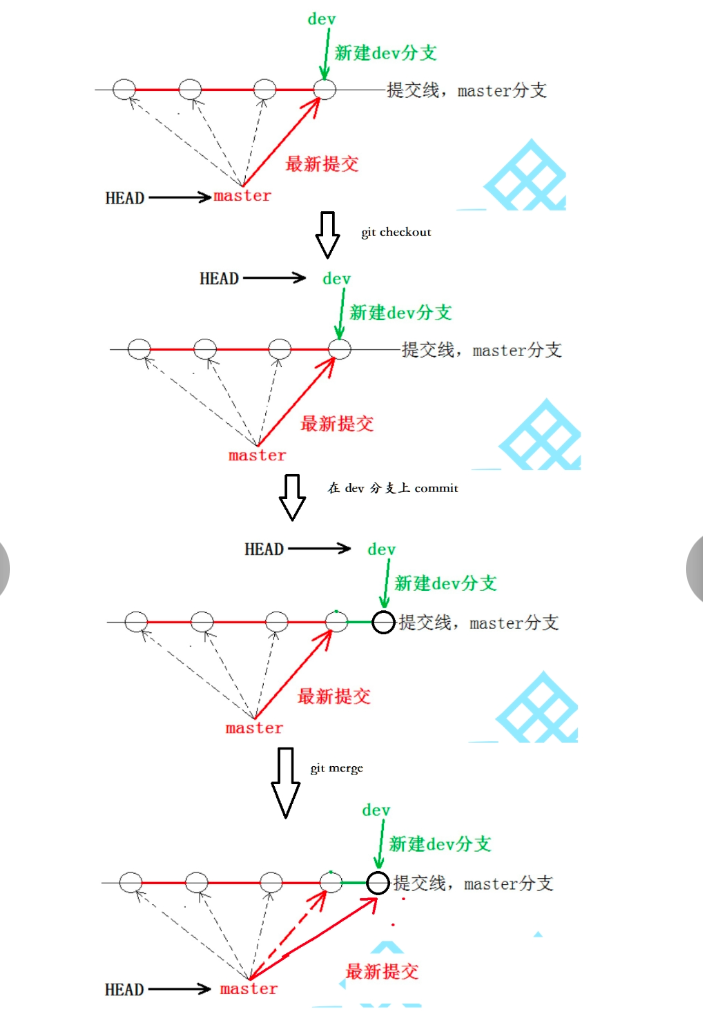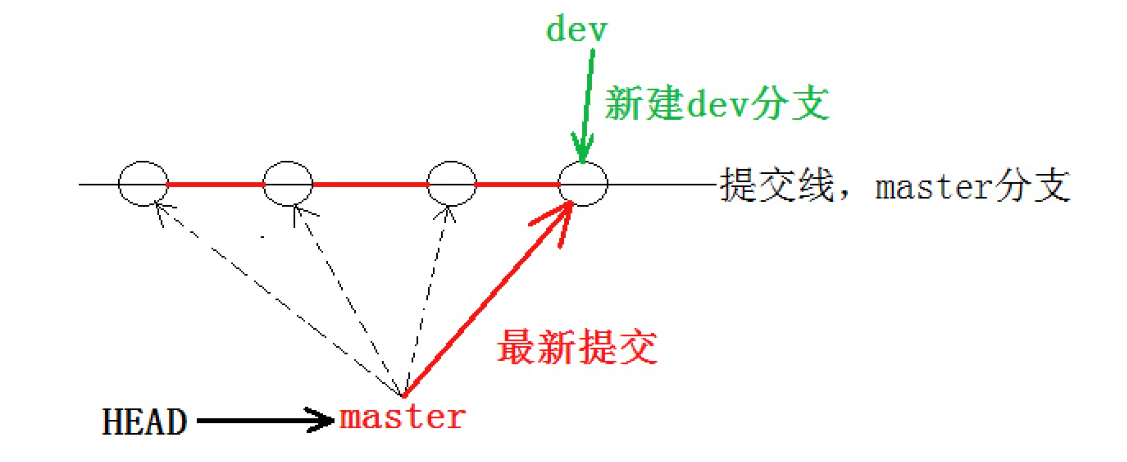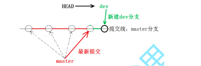 因为 dev 分支就是在最新的一次提交的基础上创建出来的。