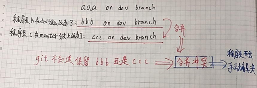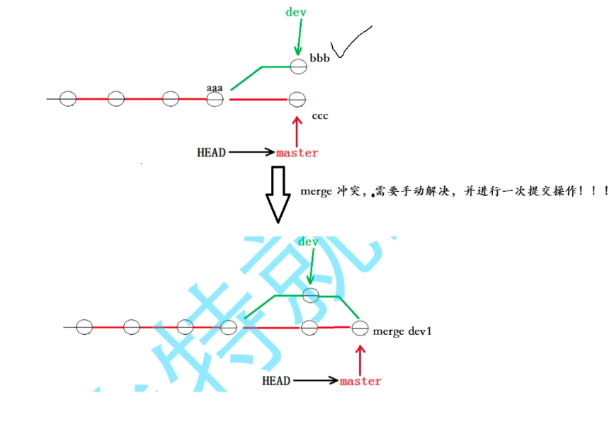冲突的解决方案:和同事商量,看看到底保留谁的,另一个人去改,然后再进行一次提交操作合并