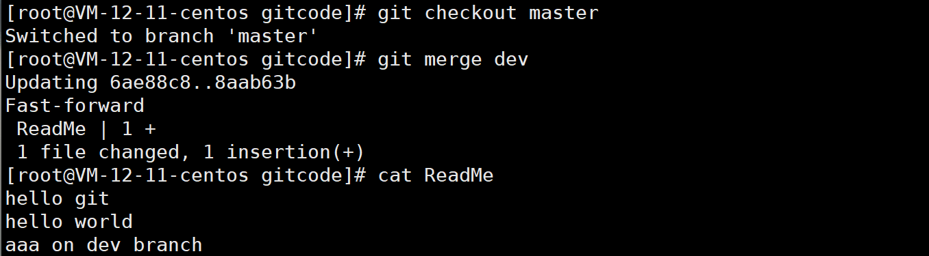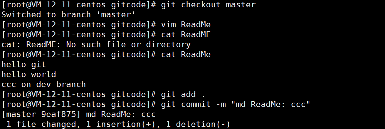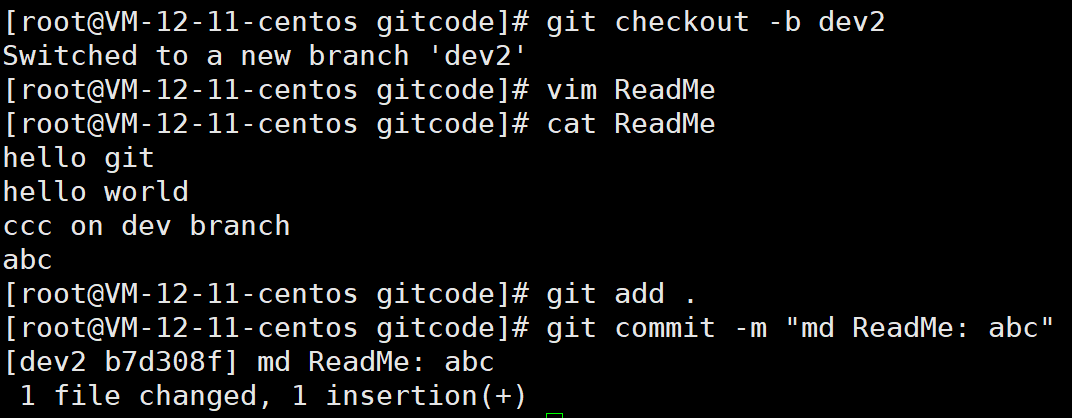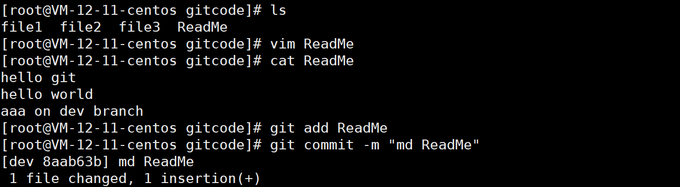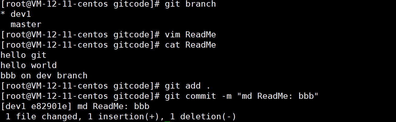 场景:现在 ReadMe 文件中的 aaa on dev branch 不能满足我们的需求,我们要对它进行升级。