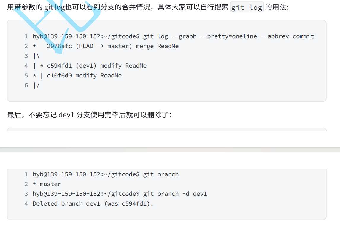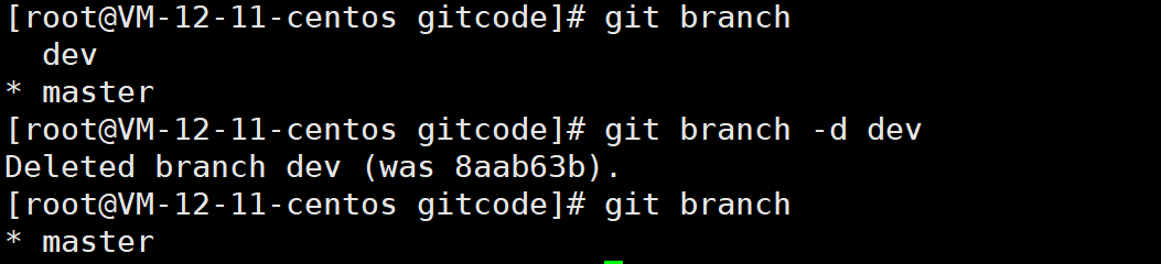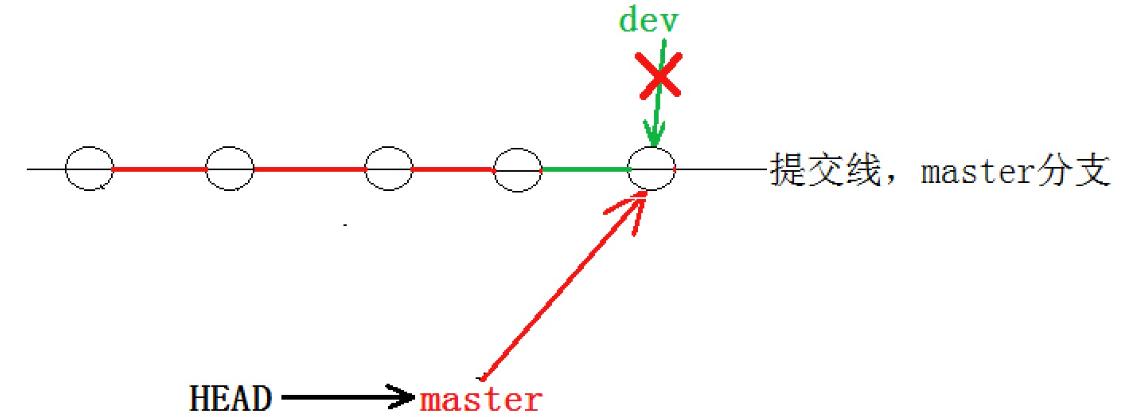 dev 分支的使命就是添加一行代码,它的使命已经完成了(已经合并到 master 分支上了),现在要删掉这一分支。