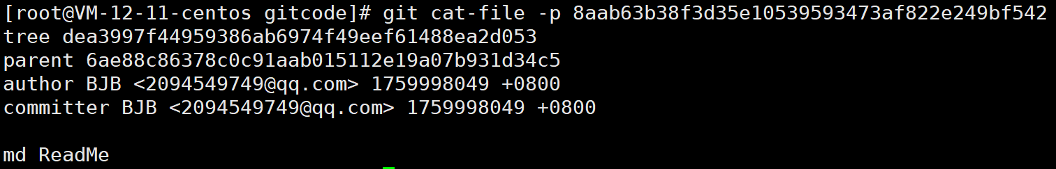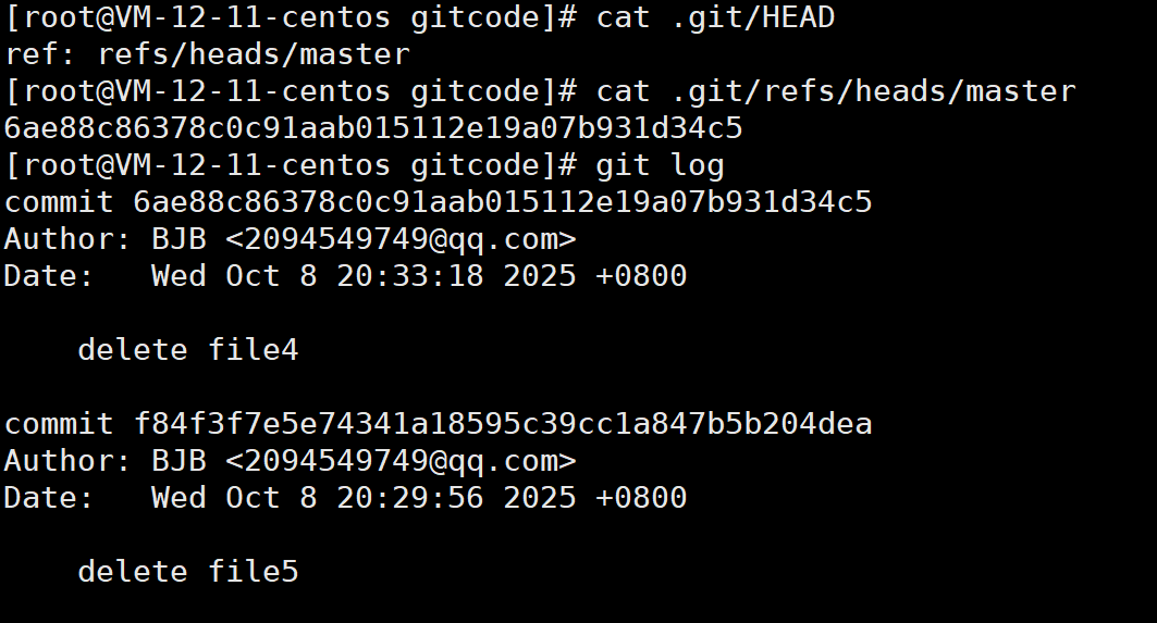 我们再来看一下之前我们提到的 HEAD 指针,发现,HEAD 指针指向 master 分支的最新的一次提交: