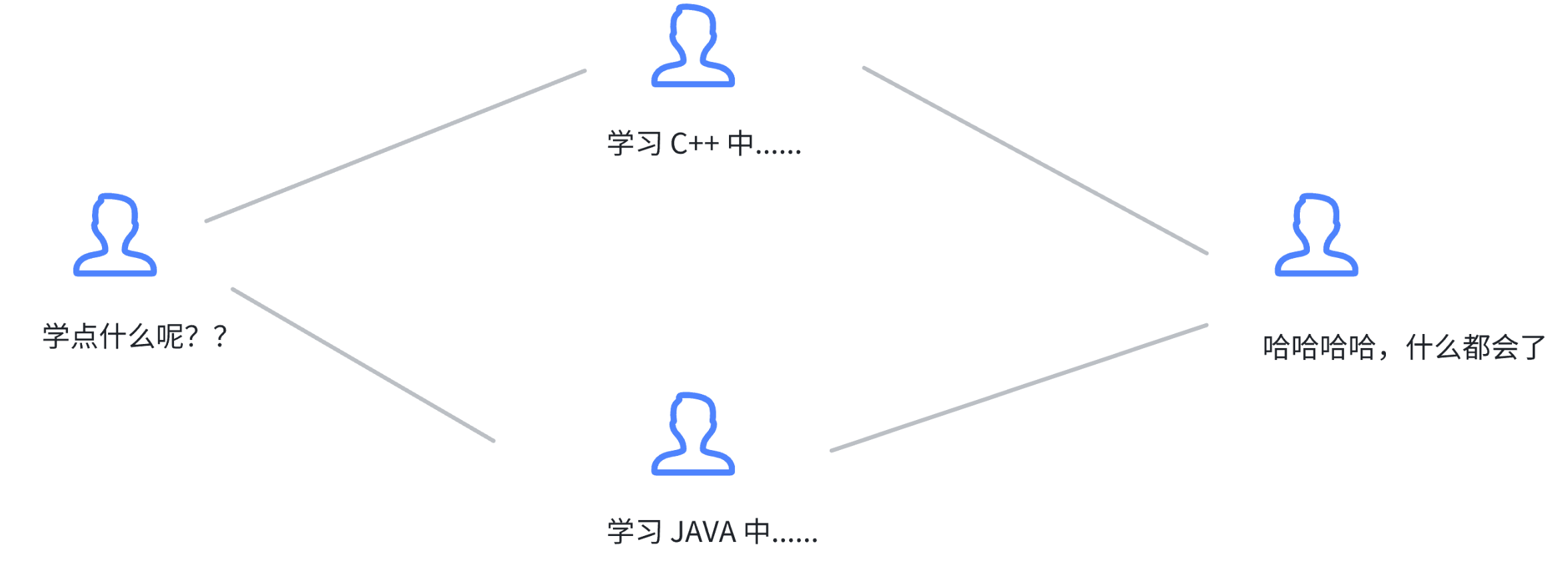 如果两个平行宇宙互不干扰,那对现在的你也没啥影响。不过,在某一个时间点,两个平行宇宙合并了,结果,你既学会了 C++ 又学会了 Java!!!