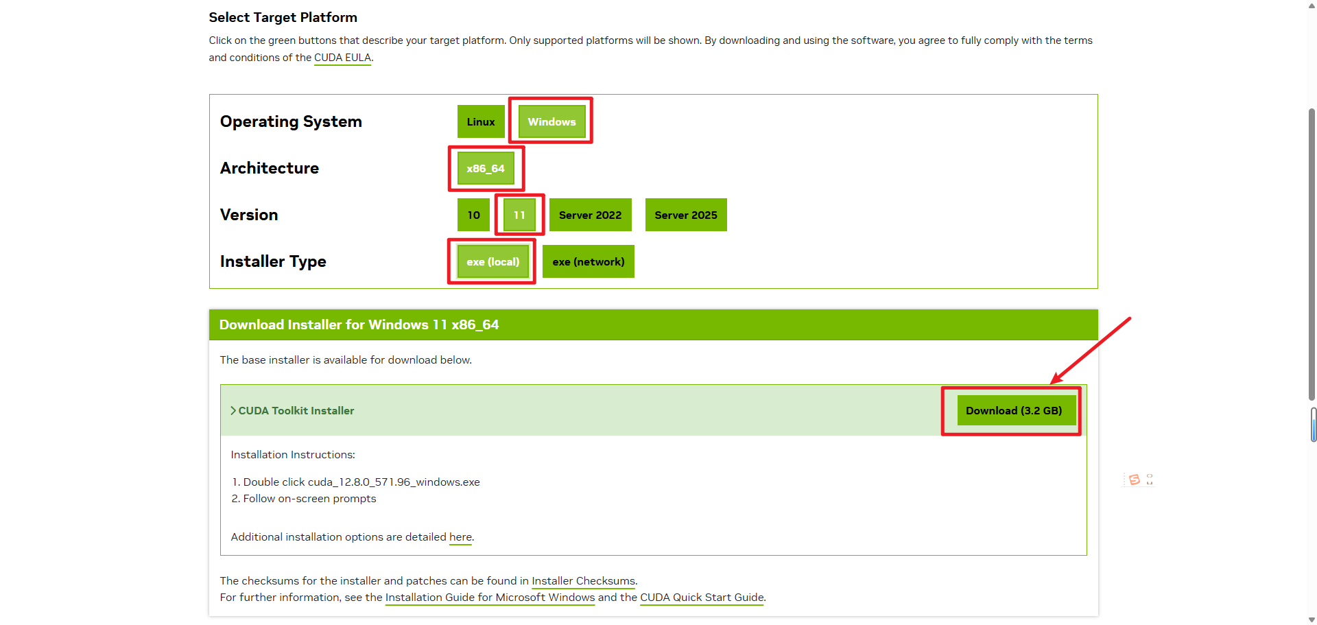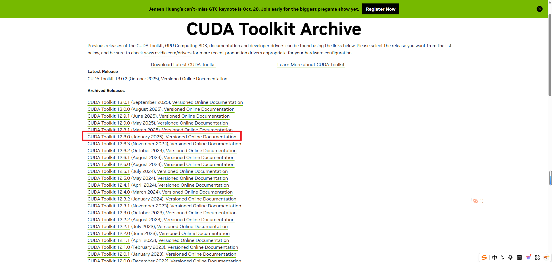 比如我下载的这个版本是最高支持CUDA12.8的版本,点击进入。
