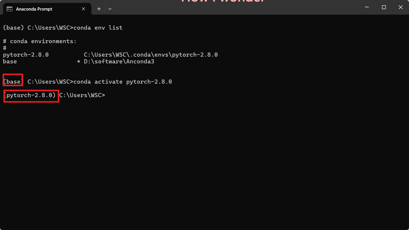 命令:conda activate <env_name>如:conda activate pytorch2.8
