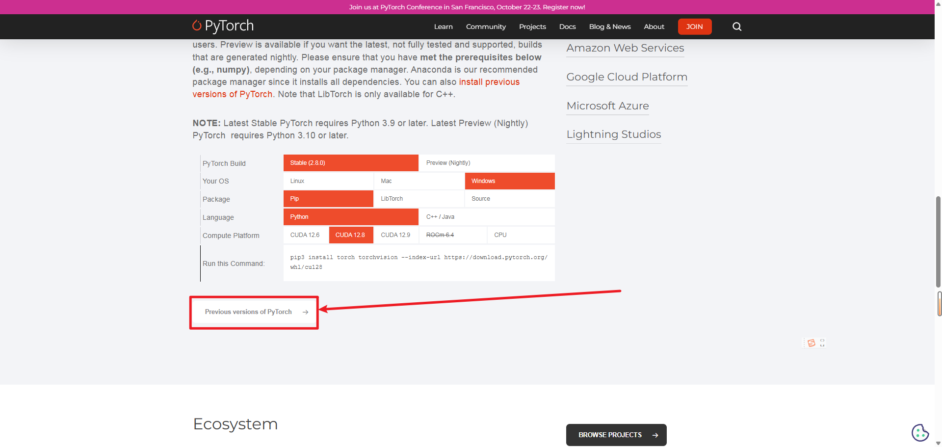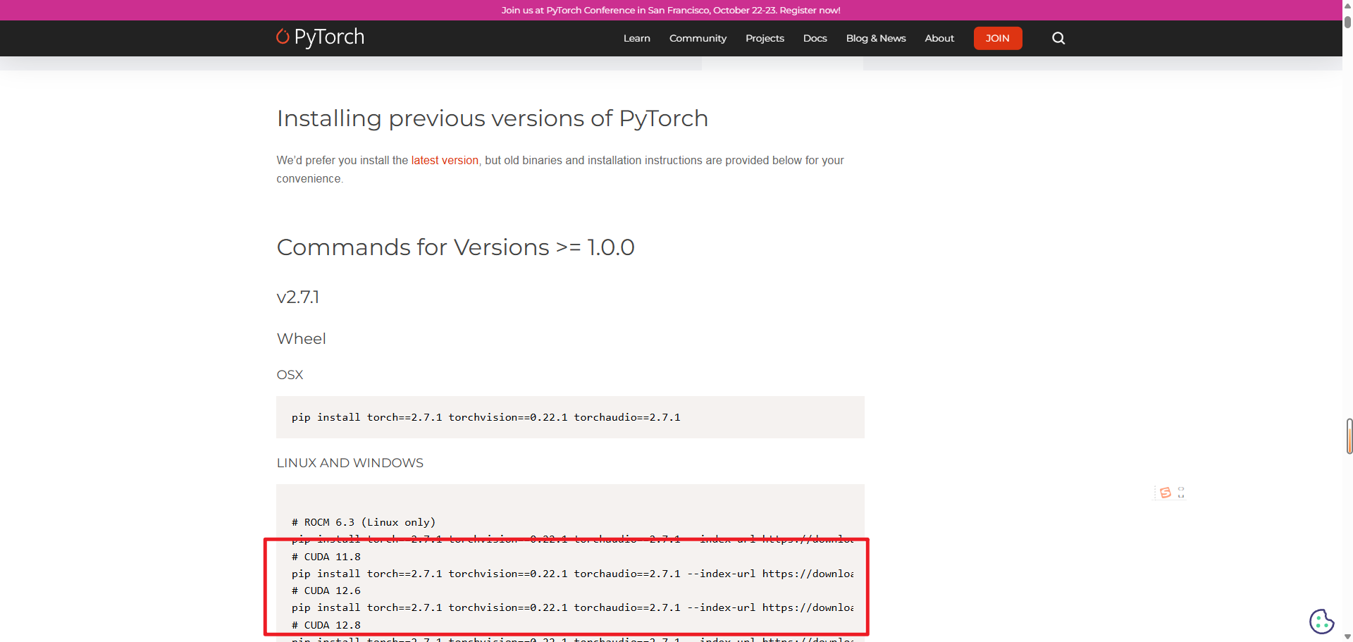 3. 如果大家的支持的CUDA版本较低,要下载老版本的PyTorch的话,进入旧版本的PyTorch下载界面。