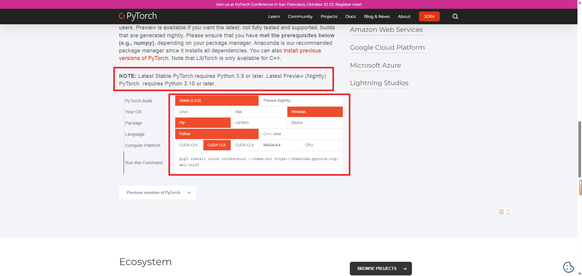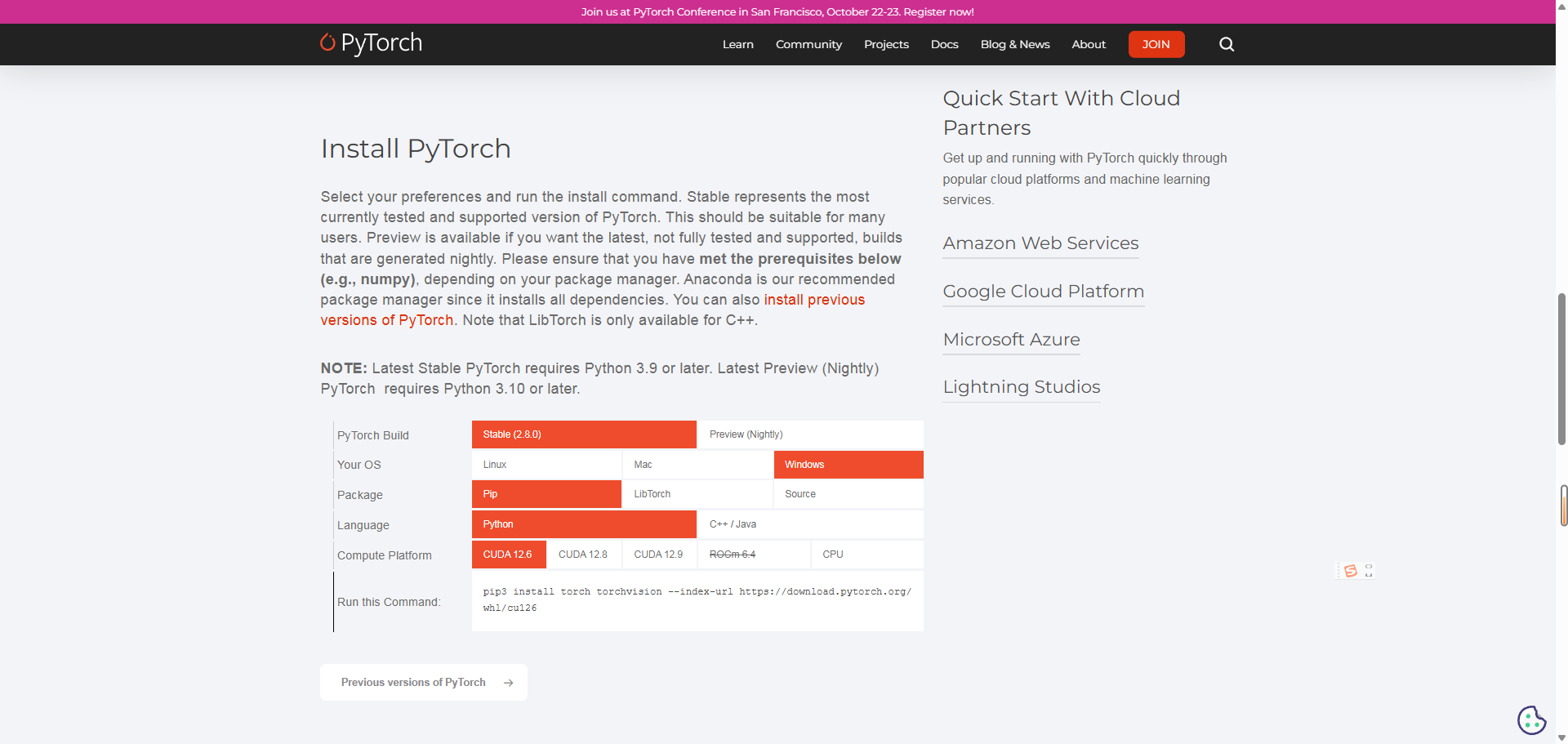 1. 打开Pytorch官网 https://pytorch.org/,向下滑找到如下页面。