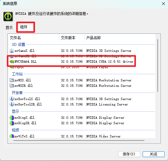 左下角系统信息==>组件,就可以查看自己的驱动程序支持的最高CUDA版本了。