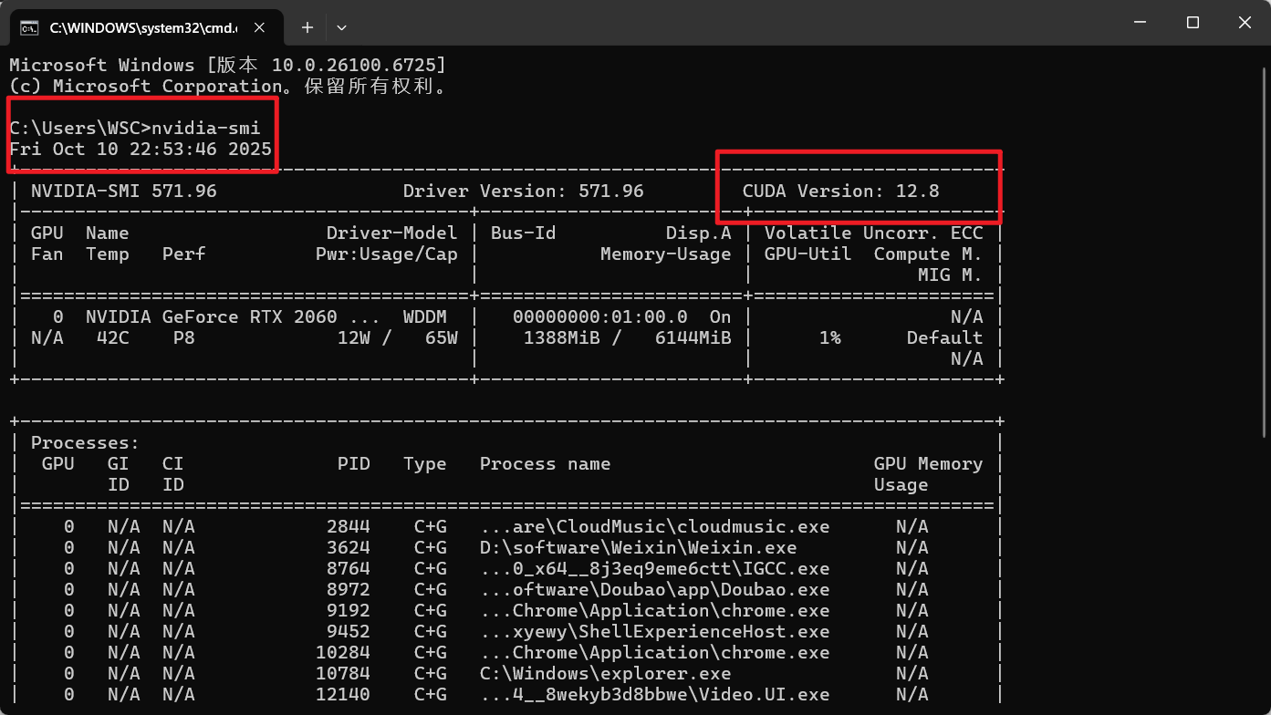 - 查看自己的NVIDIA驱动版本来确定支持的最高CUDA版本,如果觉得自己支持的CUDA版本较低,下载更新自己的驱动版本。