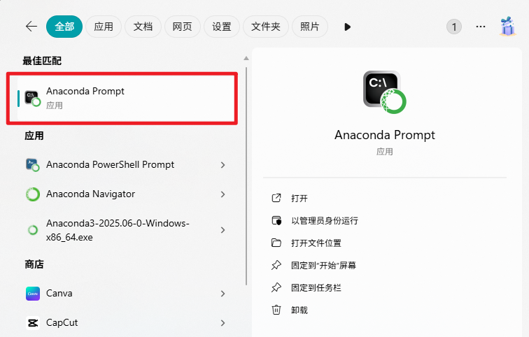 3.1 打开Anconda Prompt,查看已有的虚拟环境